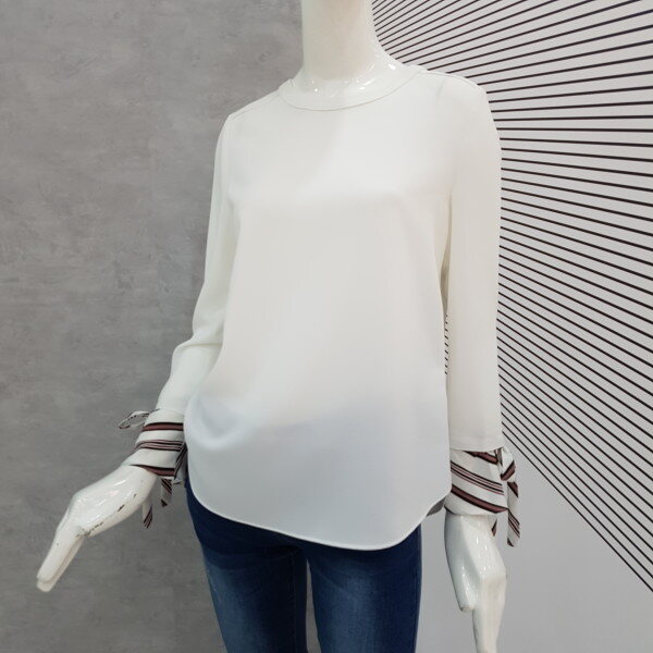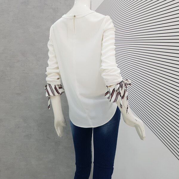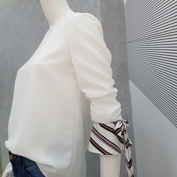 살랑거리는 핏감에 소매엔 스트라이프 러플과 리본으로 장식할수있어서 귀엽게 포인트가 되네요