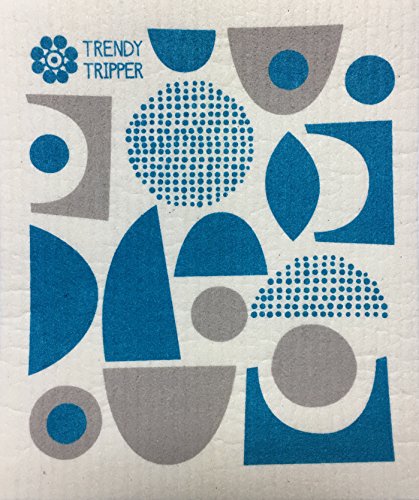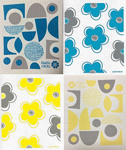 Swedish Dishcloths, Set of 4 MID-CENTURY MODERN Designs (TT) in Turquoise & Yellow