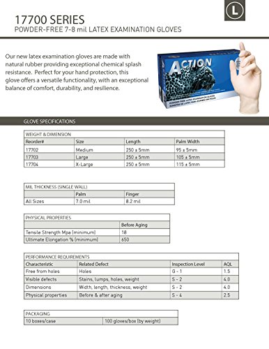 - Title : Shamrock 17702-M-bx Action Medical Grade Latex Examination Gloves, 7 - 8 mil, Powder-Free, Fully Textured, Natural Rubber, Non-Sterile, Medium, Natural (Pack of 100)
