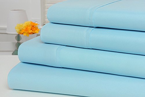 E&A LINEN 1800 Series Bamboo Egyptian Comfort Wrinkle Resistant and Hypoallergenic 4 Piece Bed Sheet Set Deep Pocket Bamboo Brushed Microfiber Blend Sheets for Ultimate Softness (Queen) (SKY BLUE)