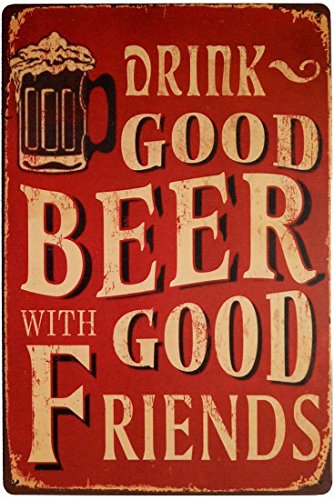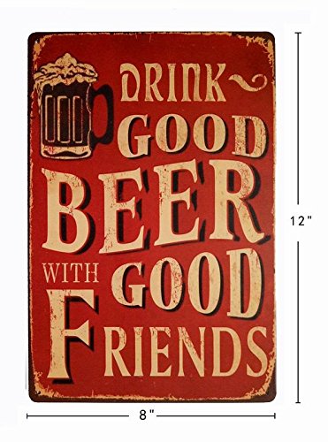 ERLOOD Drink Good Beer with Good Friends Vintage Tin Sign Wall Decor 12 X 8 Inches