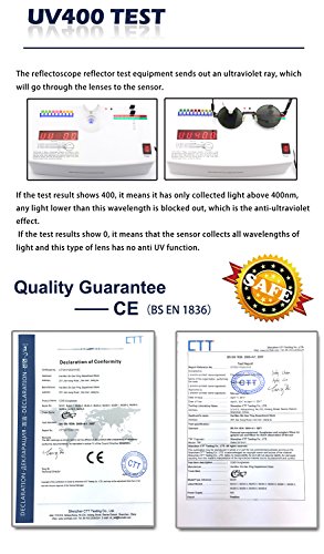 UV400 & POLARIZED LENS.UV400 protection coating blocks 100% harmful UVA & UVB Rays. Polarized lens reduce glare reflected off of roads, bodies of water, snow, and other horizontal surfaces. Restore true color, eliminate reflected light and scattered light and protect eyes perfectly.