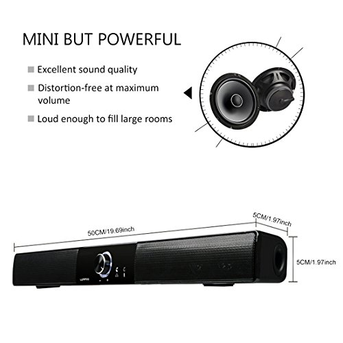 ♫ UNIQUE VOLUME CONTROL BUTTON DESIGN --- The Soundbar speaker with illuminated volume control button design, you can easily control the loudspeaker alone.