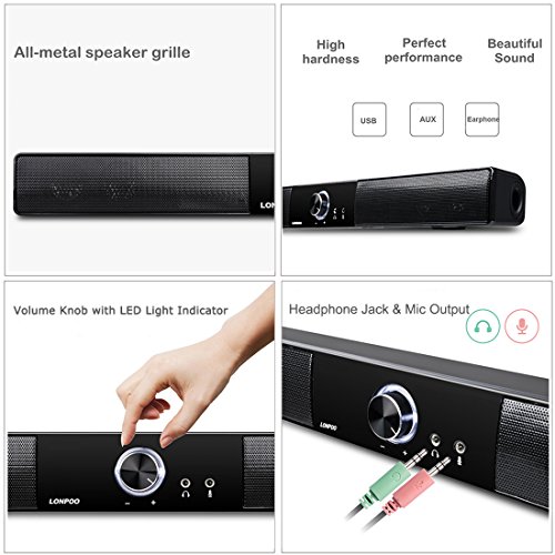 ♫ MICROPHONE INPUT --- This PC Sound Bar support for microphone input with standard 3.5 mm audio cable. The USB speakers have a 3.5mm microphone input jack that supports desktop computers, laptop computers and as a microphone extension cable for these devices.