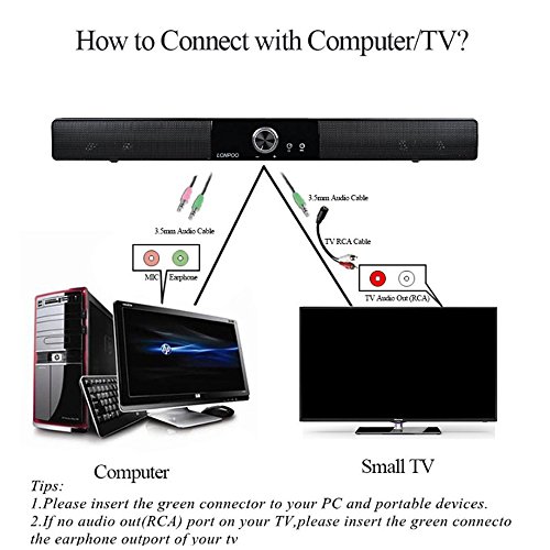 ♫ 3.5mm AUDIO INPUT --- The Computer Soundbar supports 3.5mm audio input, very suitable for PC computer, notebook, tablet, all kinds of smartphone, MP3, MP4, game consoles, walkman, CD player, small TV, radio and other devices with 3.5mm Audio adapter.