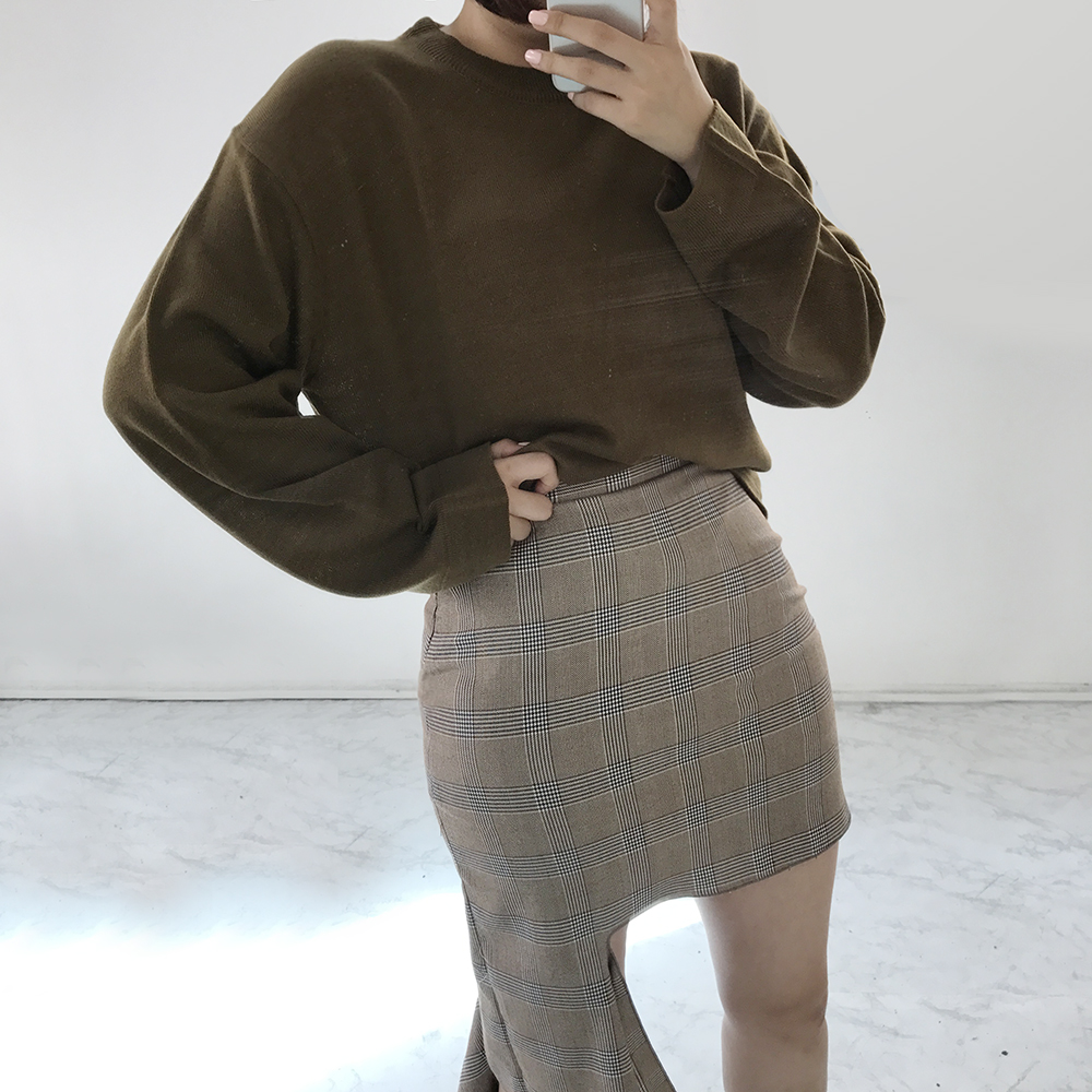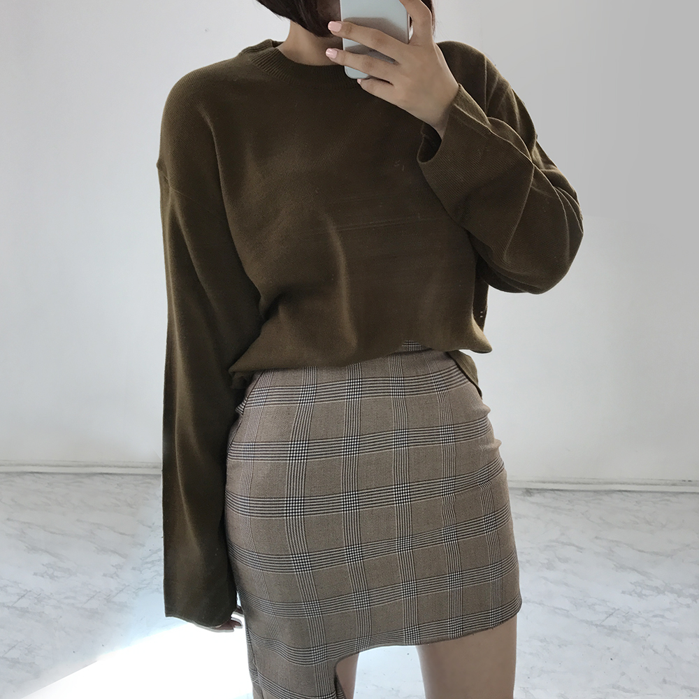 Round loose-fit knit 2color Spring 20s Women's basic clean date look