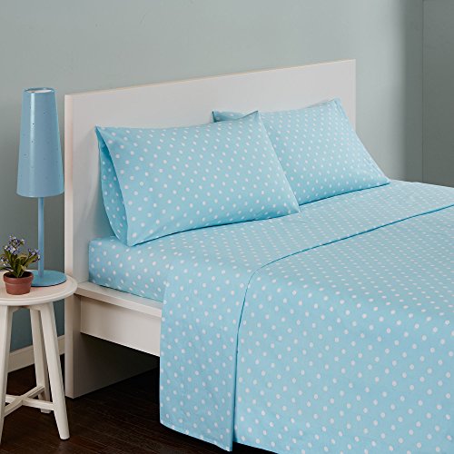 Product Description 3 Piece Girls Polka Dot Aqua Twin Deep Pocket Sheet Set, Light Blue Solid Color, All Over Dot Design Circles Teen Bedding Kids Bedroom Bold Colorful Fun Contemporary Modern, Percale Cotton 0