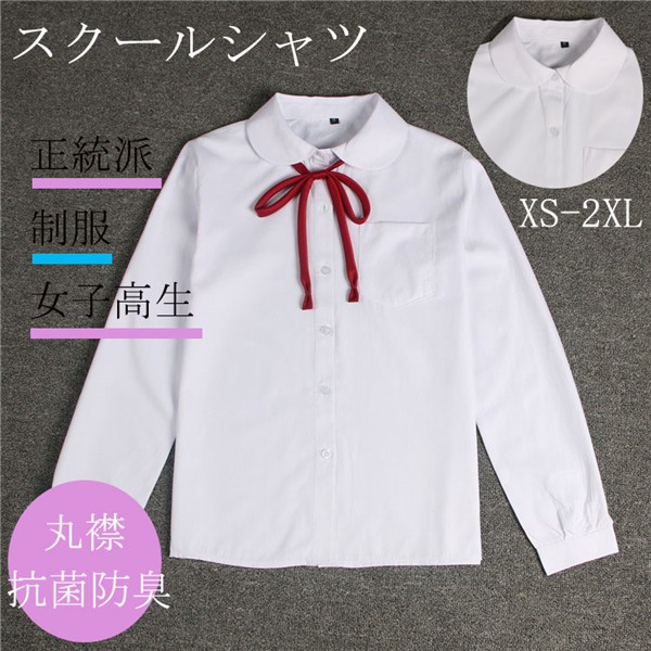 スクールブラウス 丸襟 長袖 女子 レディース スクールシャツ 学生 春 夏 女子制服 形態安定 抗菌防臭 制服メイン素材:コットンカラー:ホワイト、ピンクサイズ:XS S M L XL 2XL形態安定性の高い長袖丸襟スクールシャツが登場★体を立体的に綺麗に見せるシルエットを採用。立体仕立でスッキリ見えます。抗菌防臭加工と生地:綿素材なので肌触りも良いです。抗菌防臭加工を施しているので、匂いを軽減します。◎ネクタイが含ません。サイズは、実寸を測っているため多少の誤差はございます。実商品とPC画面では、多少見た目の色に違いがございます。初期不良の場合、未使用の商品のみ到着日から7日以内にご連絡頂ければご返金、交換対応させて頂きます。●商品が到着しましたら、必ず中の商品を確認していただき、商品の到着後、3-4日間以内に必ず弊社までご連絡ください。★いかなる理由であってもご使用後の返品交換は承れません。
