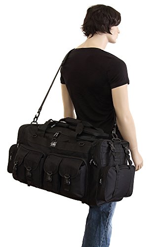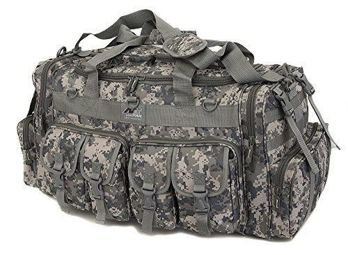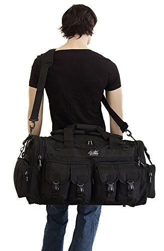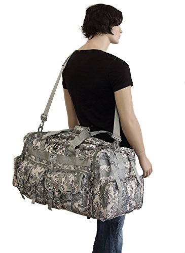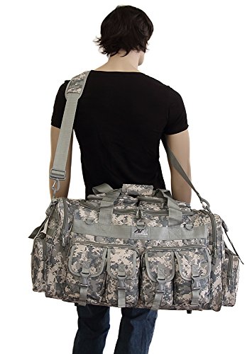 -. Binding : Misc. -. Brand : NPUSA -. Feature : Purchase includes: Adjustable flashlight on keychain with carabiner (color varies). Slides for achieving wide or spot range. Aluminum construction. Batteries Included. Small enough to take anywhere. Provides enough light to see in darkness. / Material: 600D High Density Polyester for daily durable use. Interior water proof PVC lining provides protection from water. Excellent storage: 4 front buckle strap pockets, 2 large zippered front pockets, U-shape opening main compartment, 2 zippered pockets on top of main compartment flap, 2 side zippered pockets on each side / Attachment points: molle strap system on sides, 3 front D-rings, 2 side (4 total) buckle snap load compression/hangstraps / Removable adjustable shoulder strap with pad; Heavy duty branded zippers; main handle has wrap-around velcro strap for better grip / Dimensions: 30"L x 14"W x 12"D; Ideal use: military, tactical Assault gear, hiking, hunting, camping, sports & gym -. IsAutographed : 0 -. IsMemorabilia : 0 -. Label : NPUSA -. Manufacturer : NPUSA -. ProductGroup : Sports -. ProductTypeName : SPORTING_GOODS -. Publisher : NPUSA -. Studio : NPUSA -. Title : Mens 30 Inch Molle Tactical Shoulder Strap Travel Bag with Keychain Flashlight or Key Ring Carabiner or Keychain Compass