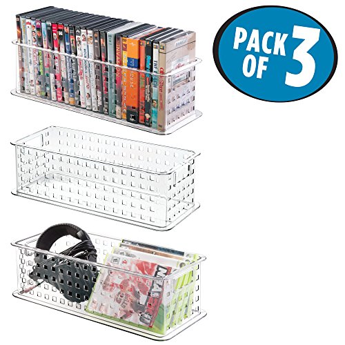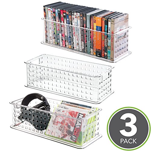 Studio : MetroDecor Publisher : MetroDecor Binding : Kitchen Product Description The mDesign Video Game or DVD Media Entertainment Basket is a handy and functional way to maximize your media collections. Organize your movies and your games and find them at a glance with the clear plastic. The convenient handles make carrying your video game or movie collection simple! 0