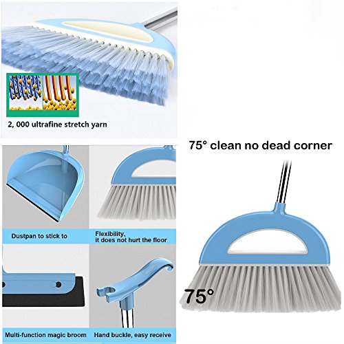 - Dustpan to stick to: Dustpan and ground zero distance, close fit. Easily remove all kinds of garbage. 75 degrees clean without a dead Angle,2 000 thin stretch threads, dust and light, no longer need to worry about ground dust