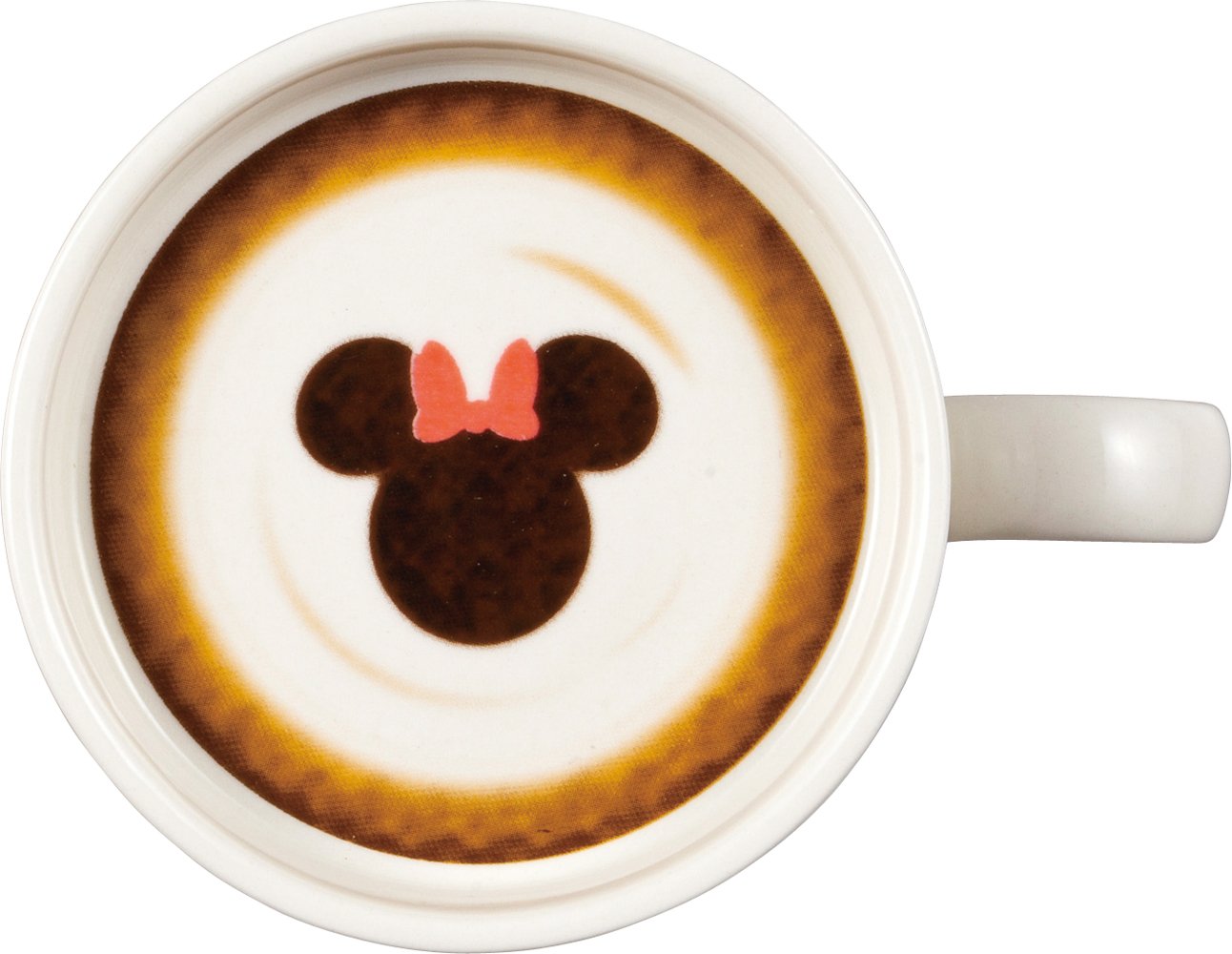 Lateart mug appeared as if the design was like cute Minnie's latte art ♪ The rounded puff mug contains "Minnie's cafe" letters.
