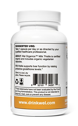 -. Binding : Health and Beauty -. Brand : drinkwel -. EAN : 0632181342671 -. Feature : Wel Organics Milk Thistle is certified organic and includes organic vegetarian capsules. / Milk Thistle supports liver function by raising protective glutathione levels.* / Each Organic Milk Thistle bottle contains 60 vegetarian capsules, or 60 servings. / Made in California, USA | Gluten Free | Vegetarian | No Artificial Flavors or Colors / We guarantee our Organic Milk Thistle product will make you feel healthier or we will give you all your money back, including shipping. If you aren't happy, contact us and we will take care of you RIGHT AWAY! -. IsAdultProduct : 0 -. Label : Drinkwel -. LegalDisclaimer : *The statements on this product page have not been evaluated by the Food and Drug Administration. Organic Milk Thistle is a dietary supplement, not a drug. Organic Milk Thistle is not intended to diagnose, treat, cure or prevent any disease. -. Manufacturer : Drinkwel -. ProductGroup : Health and Beauty -. ProductTypeName : HEALTH_PERSONAL_CARE -. Publisher : Drinkwel -. Studio : Drinkwel -. Title : USDA Certified Organic Milk Thistle Extract 5:1 (Seed) (Vegetarian Capsules) -. UPC : 632181342671
