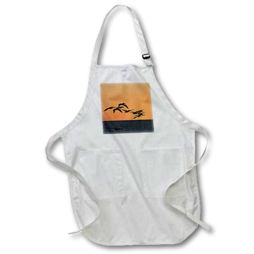 3dRose apr_86626_2 Mexico, Mazatlan. Pelican birds flying at dusk - Charles Sleicher - Medium Length Apron with Pouch Pockets, 22 by 24-Inch