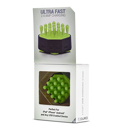 Charge all your USB devices with this unique 4 Port USB Charging Stand, which features rubberized teeth on top to hold devices and a suction-cup bottom. This is the perfect solution to a messy desktop full of tablets, MP3 Players, Phones, or other USB powered devices.