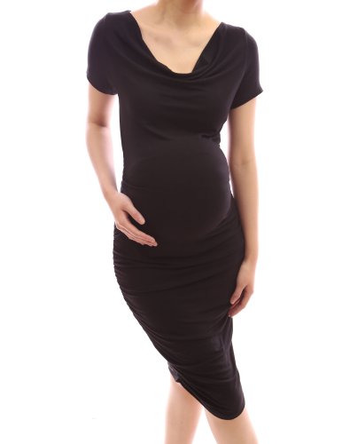 - Title : PattyBoutik Mama Stylish Cowl Neck Short Sleeve Ruched Sides Stretch Maternity Dress (Black S)