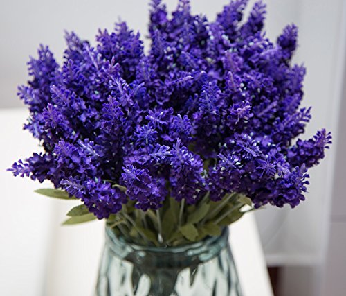Budding Joy 8pcs Artificial Flower Purple Lavender Bouquet for Home Decor and Wedding Decorations (Deep purple)