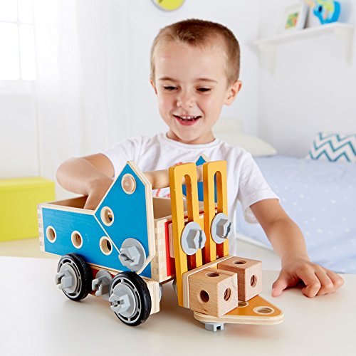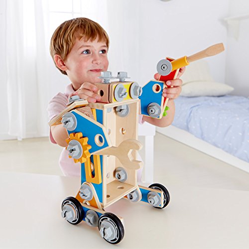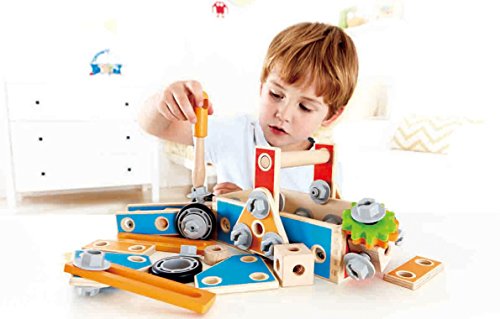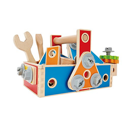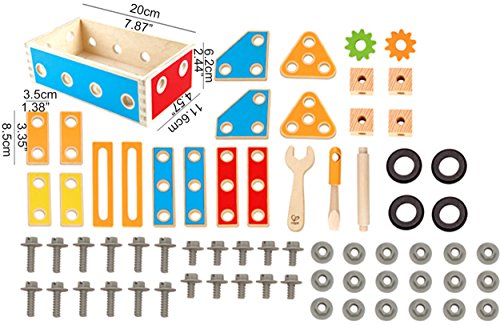 -. Feature : Amazing 72-piece tool box builder set made of high quality wood / Includes an interactive build-on box, vice, and wrench, screwdriver, and plenty of screws and wood pieces to build simple designs / A perfect STEM toy for the active, kinesthetic learner as your child works on basic life skills such as hand-eye coordination, building skills, and constructive play / Recommended for ages 36 months and up / Non-toxic finishes and child safe materials