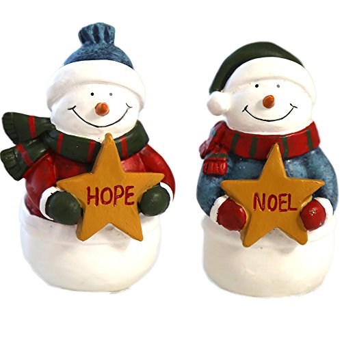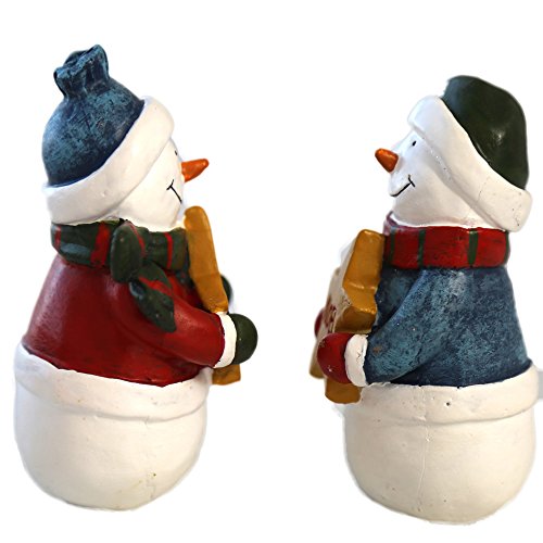 Christmas Snowman Figurines Ornaments Decoration for Holiday Gift Present (Set of 2)