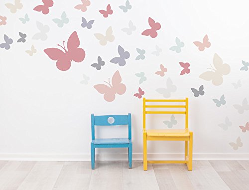 I-love-Wandtattoo WAS-10357 Wall stickers Kids "Butterflies in delicate pastel colors" 40 piece, butterfly swarm for gluing, wall tattoo, wall sticker, sticker, wall decoration