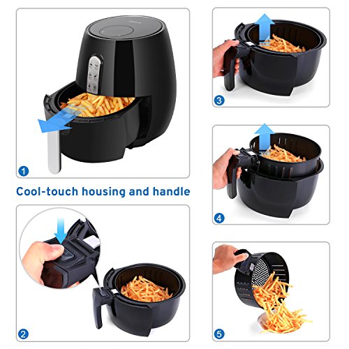 Safety Cooking: Cool touch housing and handle, non-stick coating food basket, with over heating function, double protection circuits for watch the frying food any time