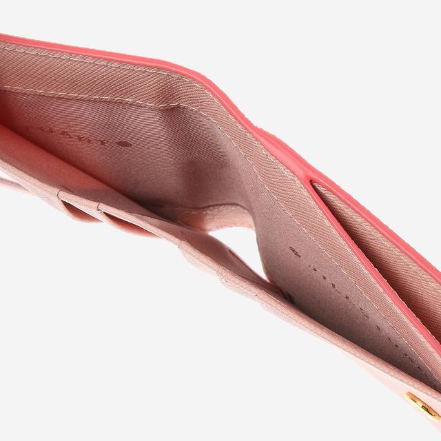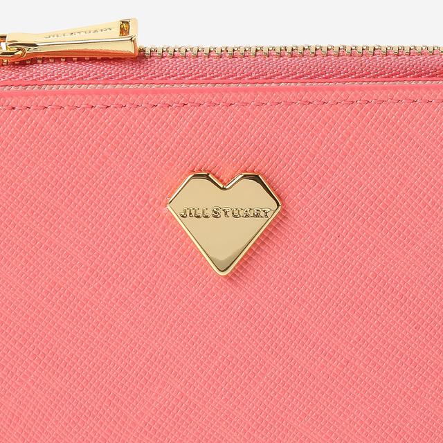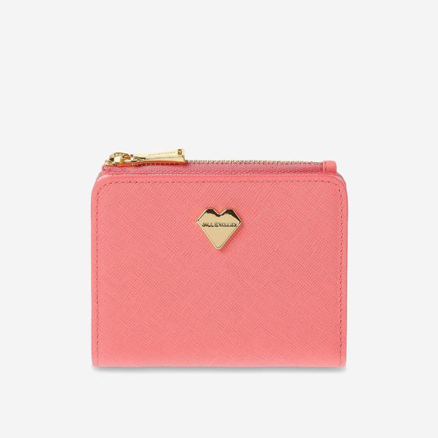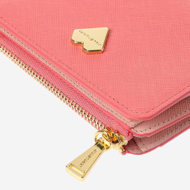 사랑스러운 핑크 톤온톤 컬러의 배색 디자인과 로고 하트 장식으로 포인트를 준 반지갑입니다.