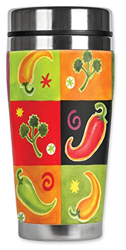 Mugzie 225-MAX "Peppers" Stainless Steel Travel Mug with Insulated Wetsuit Cover, 20 oz, Black