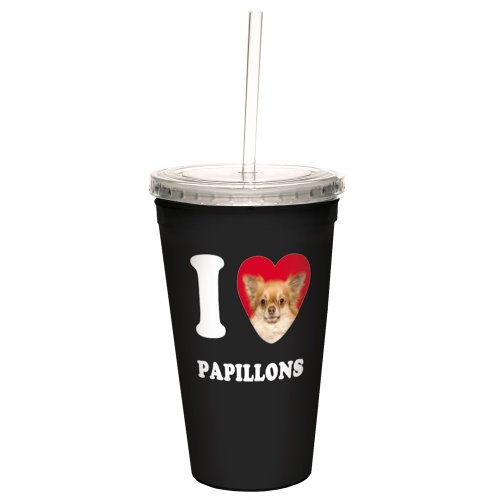 Tree-Free Greetings CC35095 I Heart Papillons Artful Traveler Double-Walled Cool Cup with Reusable Straw, 16-Ounce, Tan