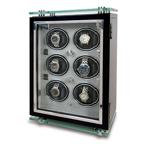 -. Title : Rapport London Optima Black Six Watch Winder w/ Glass Panels