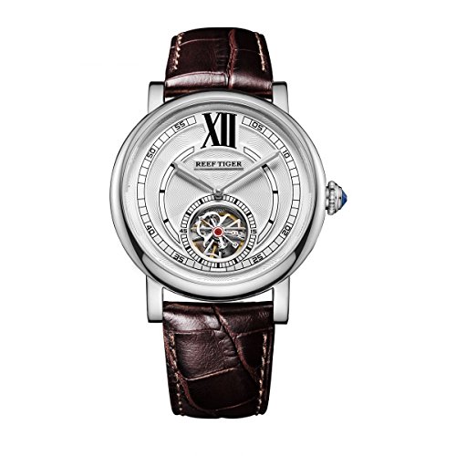 -. Title : Reef Tiger Luminous Tourbillon Watches for Men Steel Genuine Leather Strap Automatic Watches RGA192