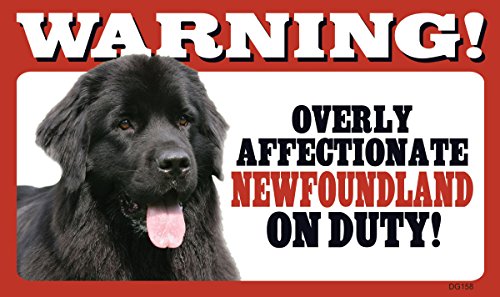 Warning! Overly Affectionate Newfoundland On Duty! Dog Wall Sign with Bonus "I Love My Dog" Decal