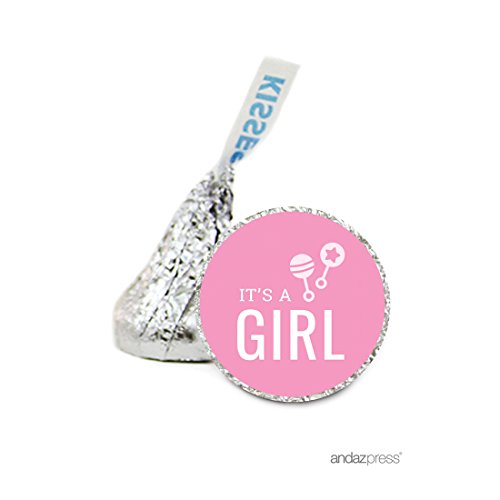 Andaz Press Pink Chevron Girl Baby Shower Collection, It's a Girl Chocolate Drop Label Stickers, 216-Pack, Fits Hershey's Kisses Party Favors