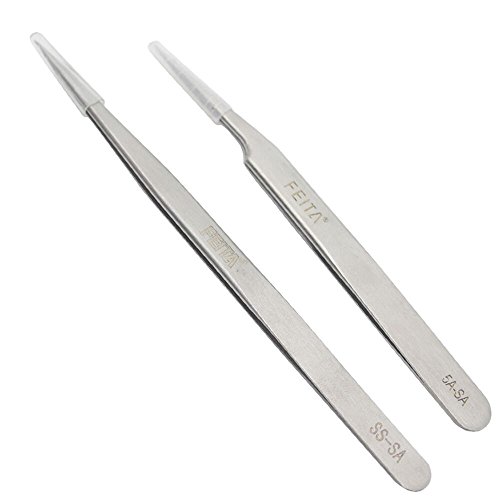 FEITA Precision Tweezers Stainless Steel Straight & Slanted Tip Best Tweezers Professional Set for Eyelash Extension, Craft, Jewelry, Eyebrow & Ingrown Hair Removal (SS&5A-SA 2Pcs)