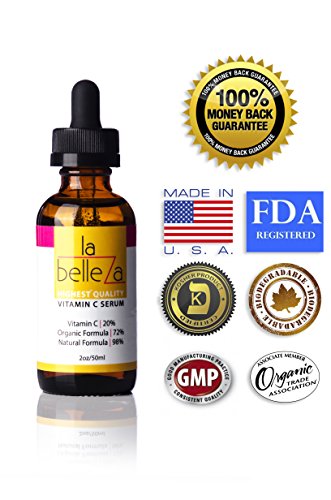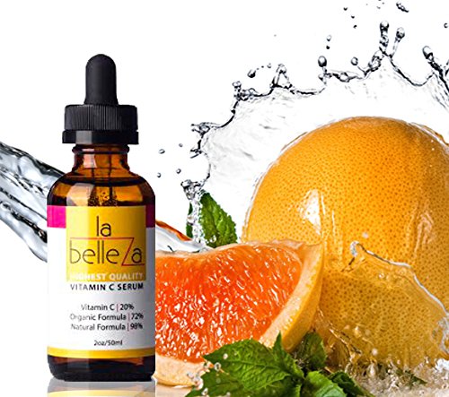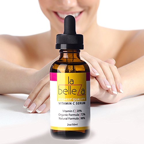 -. Feature : ELLE MAGAZINE SELLER. Synergistic Combination of High Quality Vitamin C Serum Ingredients for Maximum Results! With powerful Vitamins C 20%, Organic 72% and Natural 98% formulation La Belleza DECIMATES free radicals and reverses signs of aging, leaving your skin youthful and radiant. Get ready to get back the glowing skin of your 20s. Vitamin C repairs and regenerates skin cells. La Belleza is a comprehensive skincare and anti aging formula for powerful results against all signs of aging. / Join the Happy Labelleza Club! People all over the world using La Belleza Vitamin C Serum 20 Percent are smiling more. Join them. This powerful Natural formulation locks in moisture and plumps up your skin REDUCING visibility of fine lines and wrinkles. Say goodbye to the familiar dry stretchy sensation that makes you feel and look OLD. Look and feel young with our potent Vitamin C 20% serum. Can be used for Face, Body, Hands, Nails and as a Cuticle Remover / Made in USA in FDA approved facility by manufacturer with 30+ years experience. 100% natural formulation with no side effects on this Vitamin C Serum. Suitable for all skin types. FREE Report! Anti Aging Super Food Formula, available with purchase of La Belleza Anti Aging Serum. 100% Money Back Guarantee. Not satisfied with the results? Let us know and we'll refund your money- no questions asked! La Belleza works! Clinically proven formulation. 98% Natural 72% Organic. HIGH Potency Vitamin C 20% Formulation! Our product has high concentration of Vitamin C, giving you the best results in the quickest possible time. / An Investment in your Skin on this Vitamin C Serum! Did you know that your skin's natural reserves start depleting after the age 35? Studies show that at 50, the hyaluronic acid content of skin is less than half of that in 20 year olds. Is it any wonder that as you age, lines and wrinkles become prominent and skin feels dry? BOOST your hyaluronic acid stores as well starting today. Use La Belleza, best Vitamin C anti aging serum in the market now and invest in a youthful look for now and for years to come / La Belleza Anti Aging Vitamin C Serum gives you the 3 R Benefit - Retains moisture, Repairs and Rejuvenates Skin and Restores Glow.