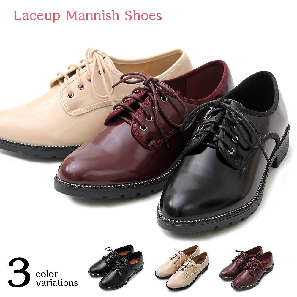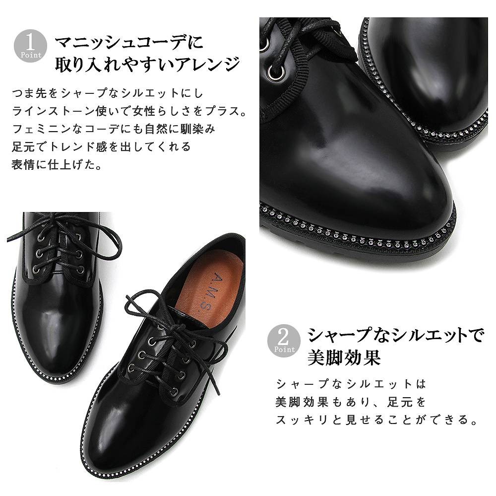 | 商品名 | マニッシュシューズ レースアップシューズ レディース マニッシュ エナメル おじ靴 オックスフォード ローヒール ラインストーン ぺたんこ とんがり |