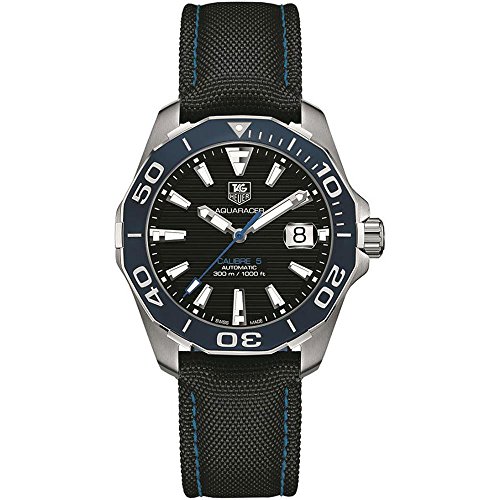 -. Title : Tag Heuer Men's Aquaracer Black Cloth Band Steel Case Sapphire Crystal Automatic Watch WAY211B.FC6363