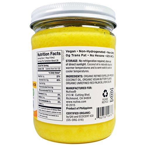 -. Feature : Organic Buttery Coconut Oil, 14 OZ by Nutiva (Pack of 2)