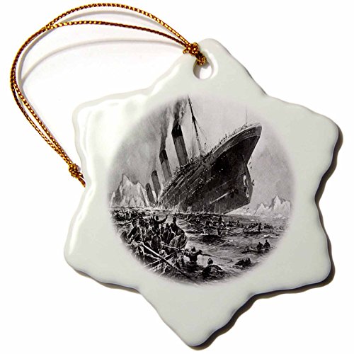 3dRose orn_80330_1 1912 Artists Rendering of Sinking of The Titanic Snowflake Decorative Hanging Ornament, Porcelain, 3-Inch