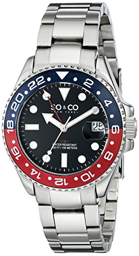 -. Binding : Watch -. Brand : SO&CO New York -. Color : Blue/Red -. Department : mens -. EAN : 0847988054553 -. Feature : Silver-tone watch featuring blue and red rotating bezel with gear-edging and black dial with with magnified date window / 40 mm stainless steel case and mineral dial window / Analog quartz movement with analog display / Three-link bracelet in polished and brushed finish and fold-over push-button clasp with safety / Water resistant to 100 m (330 ft) -. Label : SO&CO New York -. Manufacturer : SO&CO New York -. Model : 5021.2 -. MPN : 5021.2 -. PackageQuantity : 1 -. PartNumber : 5021.2 -. ProductGroup : Watch -. ProductTypeName : WATCH -. Publisher : SO&CO New York -. Size : Standard -. Studio : SO&CO New York -. Title : SO&CO New York Men's 5021.2 Yacht Club Stainless Steel Date Luminous Hands and Markers Blue and Red Unidirectional Bezel Stainless Steel Link Bracelet Watch -. UPC : 847988054553 -. Warranty : Yes