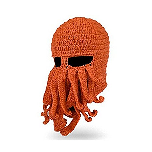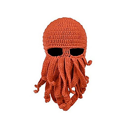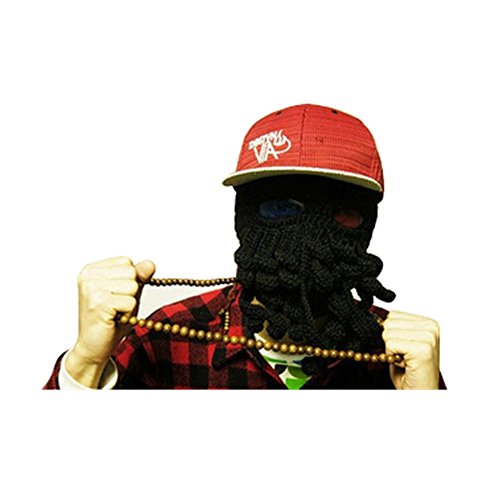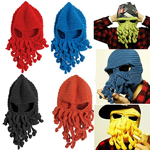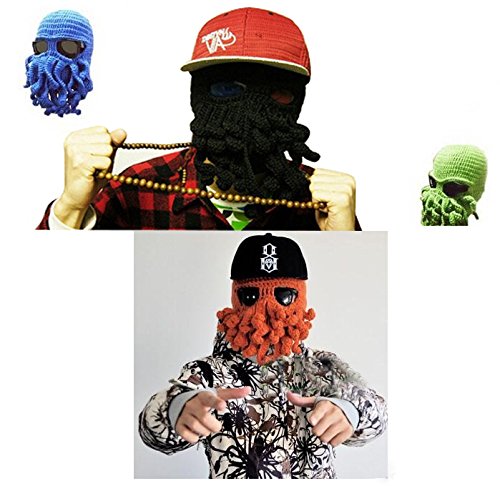 gloednApple Windproof Octopus Winter Warm Knitted Wool Beard Squid Beanie Hat Cap