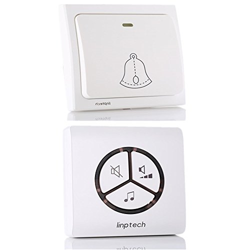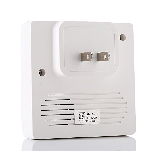 -. Feature : Our Original Classic Wireless Doorbell. White color.G1 Series doorbell. / Self-powered(No need battery) Transmitter Button,Control One/multiple Plugin Receivers. 25 optional melodies for choose. / Mute button Avalable on Receivers.Can Set as mute when needed.Operating range of over 500 feet (1000 feet in open area). 3 levels of adjustable volume from 40db to 110db. / Transmitter Button Is Rated IP33 Weatherproof and Acceptable For Outdoor Use. Receiver Easy to Plug into An Electrical Outlet . / Package includes: 1 x Doorbell Transmitter with 3M adhesive tape (button); 1 Doorbell Receiver; 1 Backup 3M adhesive Tape.Double Sided Sticker.