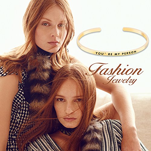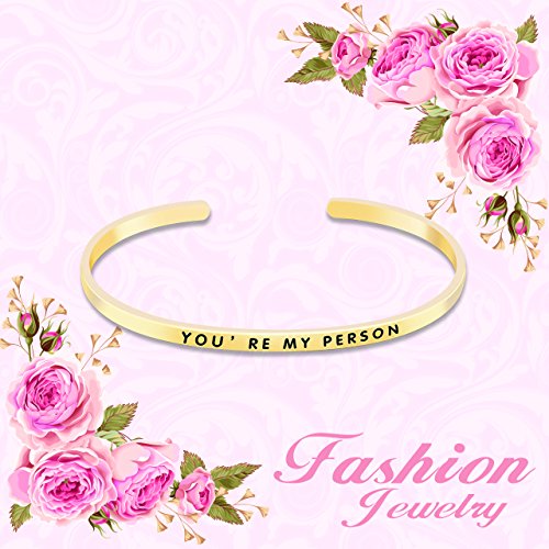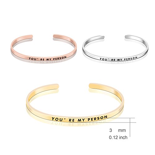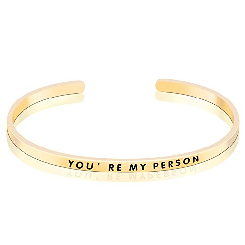 Slender sterling silver cuff bracelet with engraved message "You' re My Person"