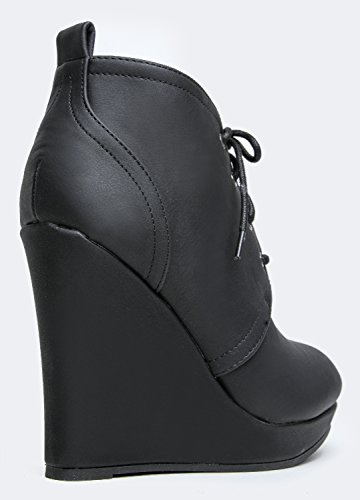 (Qupid)/Women's/Boots/DIRECT FROM USA/Qupid VAL-01 Basic Lace Up Wedge Heel Ankle Boot Bootie