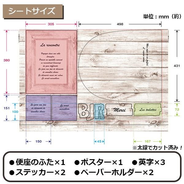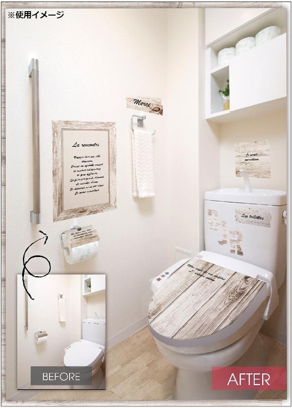 トイレは私たちの生活にとってかかせない場所。また「1人の空間」を楽しむ場所として、インテリアにこだわる人も少なくありません。このトイレデコシートは、便座のふた用・ペーパーホルダー用・壁やタンクに貼るステッカーがセットになっているので、簡単にトイレの雰囲気をシャビー風に変えることが出来ます。 |
