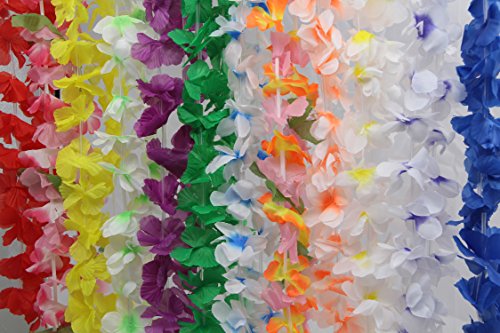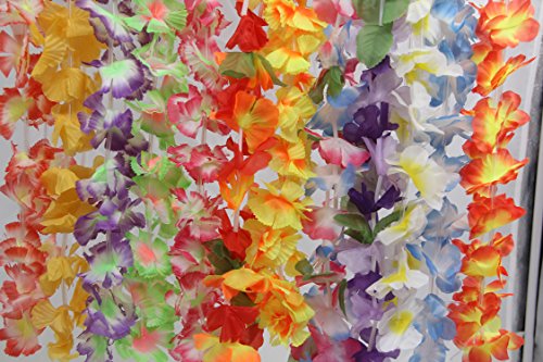 - Beautiful Silk Luau Themed Flower Leis - Assorted Color Party Leis; Great For luau Parties