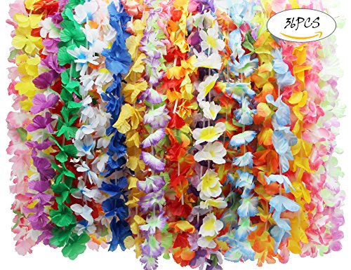 - Size 36" Average, package contains 36 pieces flower leis necklaces , Party Supplies