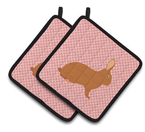 Caroline's Treasures BB7969PTHD Rex Rabbit Pink Check Decorated Pot Holder, 7.5" x 7.5", Multicolor