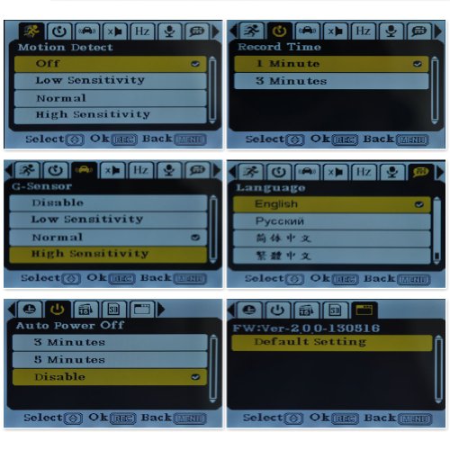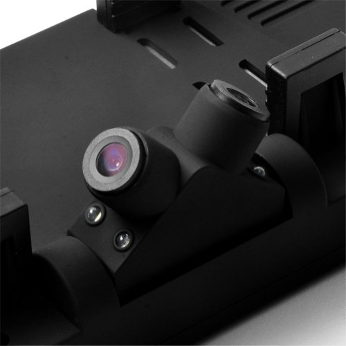 - Feature : G-Sensor can lock files and keep them from being overwritten in event of emergency / 2 Lens are installed onto the back of the rearview mirror / 360 Degree View Angle: this dual dash cameras system is able to capture 360 degree,even both corners of your car / A Rear Lens,as a backup camera.When you are reverse your car,the screen will automatically show the scene behind / Motion Detection:it starts recording automatically itself if there is motion in the video without pressing any button