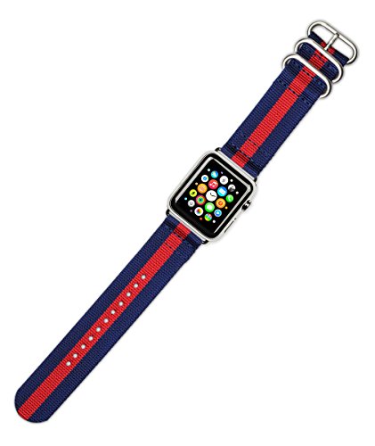 -. Title : deBeer Watch Band – 2ピースナイロン – Navy withレッドストライプ – Fits 38 mmシリーズ1、2、3 [シルバーアダプタApple Watch ]