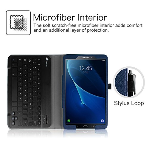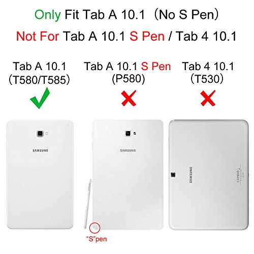 -. Binding : Wireless Phone Accessory -. Brand : Fintie -. Feature : Specifically designed for Samsung Galaxy Tab A 10.1 Tablet. It will not compatible with Samsung Galaxy Tab A 10.1 with S Pen (SM-P580) and any other model device. / Real "hard" laptop style keyboard with high end ABS material. Not cheap silicone keyboard as other cases in market. A spring mechanism underneath each key ensures a tactile response with every stroke, helping you to type faster and with less error than on a touchscreen / Removable Bluetooth keyboard integrates seemlessly with your Galaxy Tab A 10.1 and other Bluetooth enabled devices / Slim, durable leather like cover that protects your device. Adjustable stand securely holds your Tab A 10.1 in landscape mode / Designed with a smart holder for stylus/pen (stylus NOT included). Available in a variety of bright, fun colors. Package includes one folio case and one removable bluethooth keyboard -. Label : Fintie -. Manufacturer : Fintie -. PackageQuantity : 1 -. ProductGroup : Wireless -. ProductTypeName : WIRELESS_ACCESSORY -. Publisher : Fintie -. Studio : Fintie -. Title : Fintie Samsung Tab A 10.1 Keyboard Case